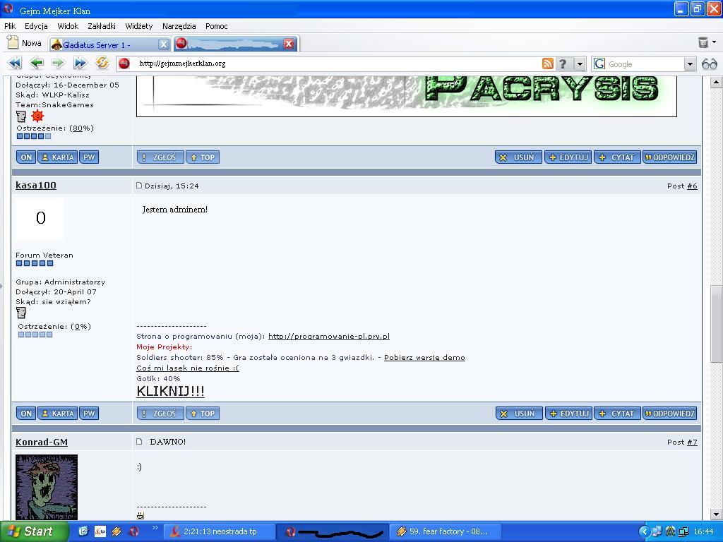 A w sumie to forum się normalnie indeksuje w wyszukiwarkach? Bo ja stwierdziłem, że np. w Google ciężko znaleźć cokolwiek z gmclanowego forum. Większość tematów jest chyba nieindeksowana od dawna...